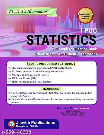 Book Title :Jeevith 1st PUC – STATISTICS – Student’s Illuminator|A Complete Question Bank With Answers-An Authentic Approach| Thoroughly Updated For 2025-26|